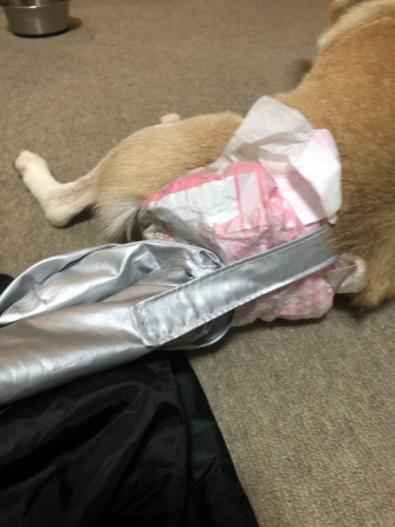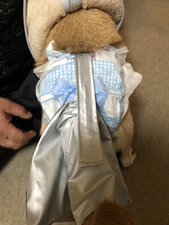 紙オムツの尻尾の穴を3センチほど下あるいは上に(紙オムツによっては異なります)引っ張って広げてから本品をワン君、ワンコちゃんに、装着して頂き、紙オムツでしっかりと本品を押さえて頂き、テールパイプと左右のズレ止めをマジックテープで止めた後に袋を上下左右に引っ張り(オムツの中で突っ張るように)広げて頂ければ、95%以上の確率で袋に収まる仕掛けになっております。(軟便時・下痢便時や少量の場合を除く)